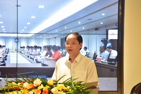 Phó Chủ tịch UBND TP Hà Nội Nguyễn Doãn Toản báo cáo tại hội nghị
