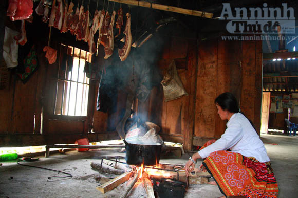 Đối với đồng bào nơi đây, việc đun nấu thường là bếp củi, vì thế những quy luật của dân bản quan niệm thì ai cũng như nhau cả. Đó là lễ cúng bếp lửa vào dịp Tết. Điều đặc biệt mà ta có thể thấy trong bếp của đồng bào nơi đây, đó là treo thịt gác bếp. Đó là sản vật ngon nhất mà họ dâng lên bếp lửa trước hết, rồi tiếp đến mới là gia đình hạ xuống ăn.