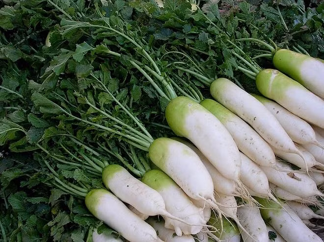 Theo Đông y, củ cải sống có vị cay, tính mát, củ cải nấu chín có vị ngọt, tính bình, quy kinh phế và vị, có công dụng chữa một số bệnh đường hô hấp, tiêu hóa, tiết niệu...