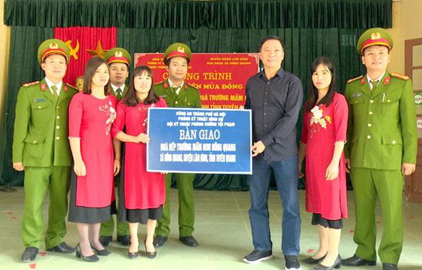 Thực hiện Chương trình “Tình nguyện mùa Đông”, mới đây, Đội Kỹ thuật phòng chống tội phạm, Phòng Kỹ thuật hình sự phối hợp với Đoàn xã Hồng Quang, huyện Lâm Bình, tỉnh Tuyên Quang đã tổ chức chương trình xã hội từ thiện, khánh thành trường Mầm non xã Hồng Quang, trao tặng đồ dùng nhà bếp cho nhà trường. Tổng giá trị tài sản mà Đội Kỹ thuật phòng chống tội phạm mang đến cho nhà trường ước khoảng 70 triệu đồng.