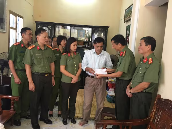 Đại diện Cụm thi đua số 7 thăm hỏi, trao sổ tiết kiệm cho gia đình chị Nguyễn Thị Thu, cán bộ CATX Sơn Tây