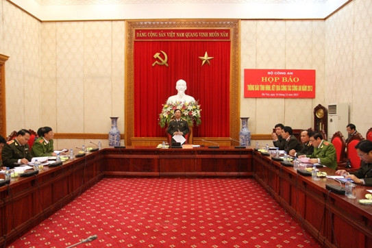 Trung tướng Nguyễn Danh Cộng, Chánh Văn phòng Bộ Công an đã thông báo tóm tắt tình hình công tác đảm bảo ANTT và xây dựng lực lượng CAND năm 2013; phương hướng, nhiệm vụ công tác Công an năm 2014. Trong năm 2013, lực lượng Công an đã điều tra, khám phá 44.033 vụ phạm pháp hình sự, bắt xử lý 88.259 đối tượng, triệt phá 2.643 băng, nhóm tội phạm; bắt 7.980 vụ cờ bạc, bắt và vận động đầu thú 11.606 đối tượng truy nã. Các đơn vị Công an phối hợp với Hải quan, Bộ đội biên phòng, Cảnh sát biển triệt phá nhiều đường dây, tổ chức tội phạm ma túy lớn, hoạt động trên nhiều địa bàn trong nước và có liên quan đến nước ngoài.