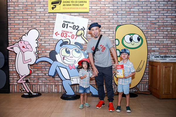Nhạc sĩ Huy Tuấn cũng đưa hai con nhỏ đến theo dõi “Monta trong dải ngân hà kỳ cục”.