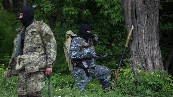 Lực lượng ủng hộ độc lập ở gần thị trấn Slavyansk, miền đông Ukraine ngày 5-5