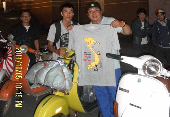 “A Chảy” tên thật là Lư Thành Hoàng (SN 1977, thành viên Câu lạc bộ Vespa Sài Gòn). Sáng 14-10, ngồi bên hồ Gươm, A Chảy kể lại kỷ lục xuyên Việt trong thời gian nhanh nhất bằng xe Vespa của mình.