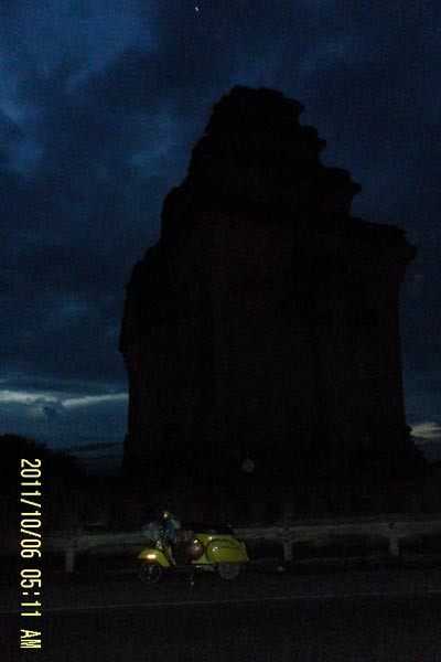 Chiếc Vespa cổ, dù đã được độ cho đèn pha sáng hơn, song trong bóng đêm mịt mùng cũng chỉ soi rọi được một đoạn đường vừa phải phía trước mũi xe. “Đôi khi tôi phải bám theo mấy chiếc ôtô tốc hành Nam- Bắc mới quan sát được đường rõ hơn”- A Chảy nhớ lại. Trước ngày xuất phát, A Chảy đã cố ngủ bù, song do tâm trạng bồn chồn trước chuyến đi dài nên không tài nào nhắm mắt được. Cuối cùng, A Chảy “viện” đến trà Bắc đặc- một đồ uống mà anh không quen- làm “thuốc” chống buồn ngủ.