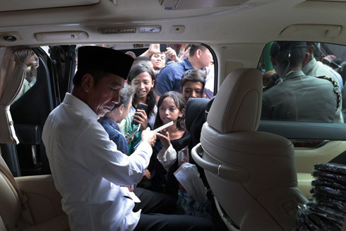 Hãy xem sự nhạy bén chính trị của ông Widodo ở mức nào trong chuyến thăm Tanah Tinggi - một khu dân cư chủ yếu là tầng lớp lao động ở Jakarta - vào một ngày thứ sáu. Thủ đô Jakarta cũng là một trong những thành trì ủng hộ ông với dân số khoảng 30 triệu người. Ông đã làm lễ cầu nguyện tại một nhà thờ Hồi giáo địa phương, ngồi khoanh chân trên thảm cùng với những tín đồ khác. Bên ngoài nhà thờ, đông đảo người dân tập trung với hy vọng có cơ hội “chụp ảnh tự sướng” với Tổng thống.