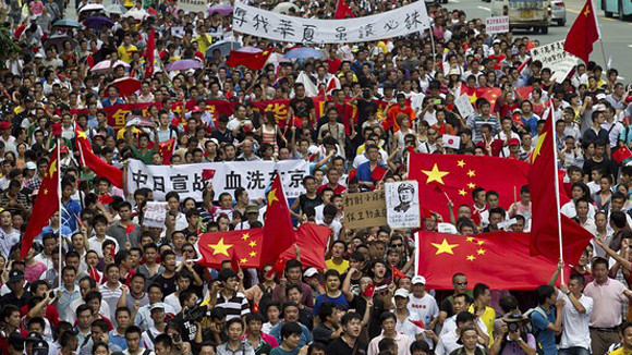 Anh này đã có mặt tại cuộc biểu tình chống Nhật dọc theo một tuyến phố chính ở trung tâm thành phố Thâm Quyến hôm 16-9 vừa qua.
