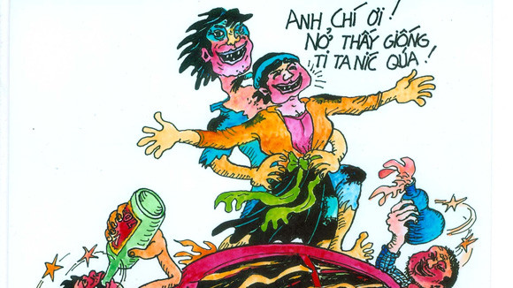 60 bức tranh biếm họa trên khổ giấy A3 là thành quả lao động của họa sỹ trong suốt 10 năm qua. Tại đây, người xem sẽ được chu du trong một hành trình dài với những điểm nóng trong đời sống xã hội. Triển lãm tranh “Một phản biện vui vẻ” của ông đang diễn ra tại Cà phê Sách Trung Nguyên, 52 Hai Bà Trưng và kéo dài đến hết ngày 3-4. Họa sỹ Dzím từng là cán bộ nghiên cứu của Viện Chính sách và Chiến lược, Bộ Nông nghiệp và Phát triển nông thôn.