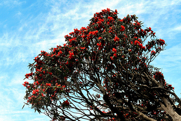 Hành trình du ngoạn trên đỉnh Fansipan, du khách sẽ bắt gặp nhiều cây đỗ quyên cổ thụ được khu du lịch bảo tồn nguyên vẹn. Suốt quá trình thi công quần thể tâm linh trên khu vực đỉnh, chủ đầu tư Sun Group sẵn sàng cho xẻ đá, uốn đường để giữ nguyên trạng những gốc đỗ quyên vài trăm tuổi. Đi dưới những tán đỗ quyên cổ thụ thân cành đã mốc thếch rêu phong, ngắm những chùm hoa rực căng sức sống, thấy hành trình lên Fansipan mùa này thật nhiều ý nghĩa.