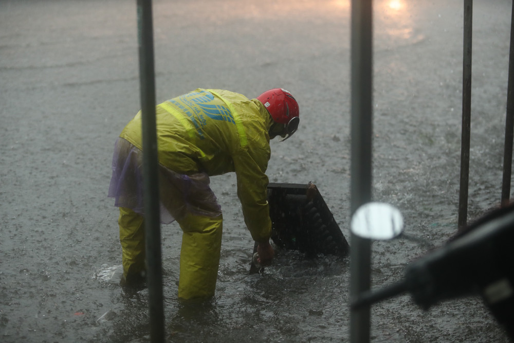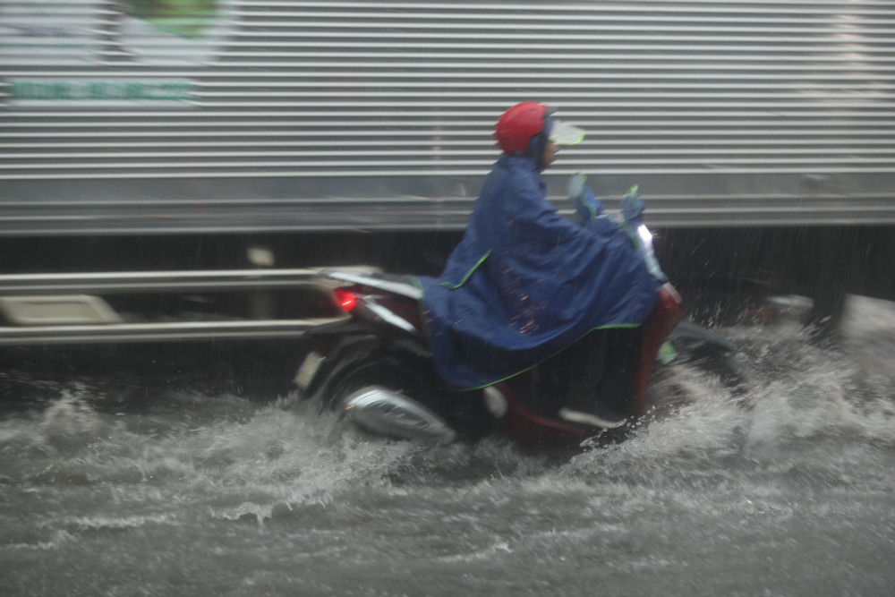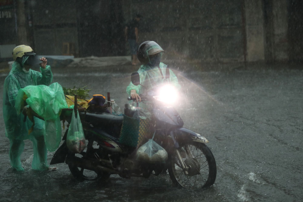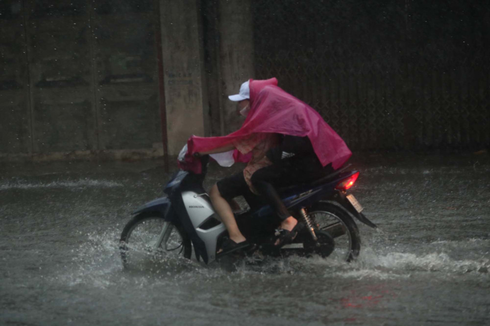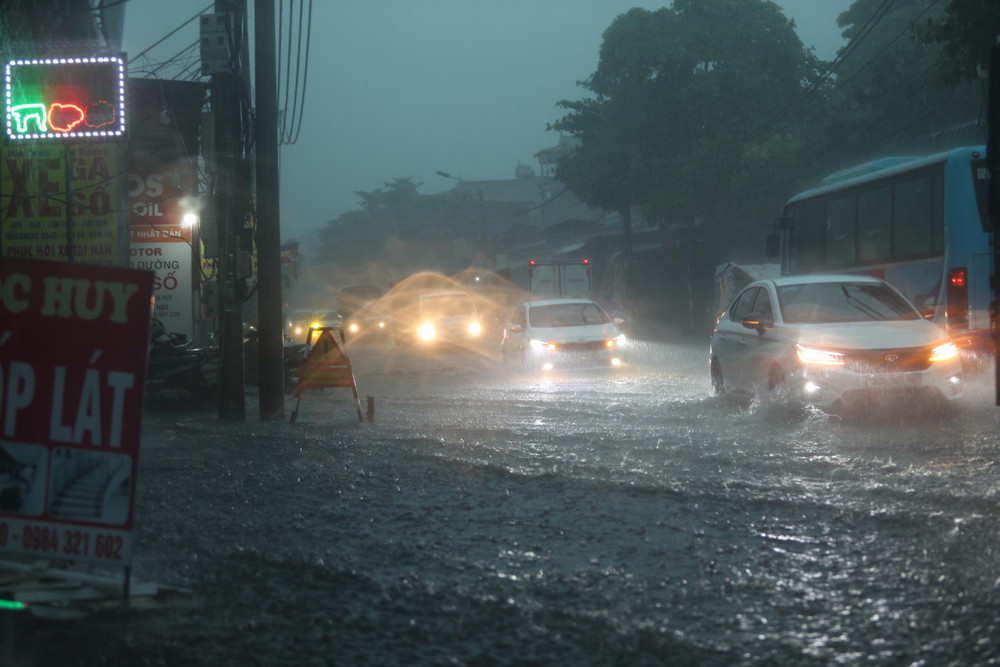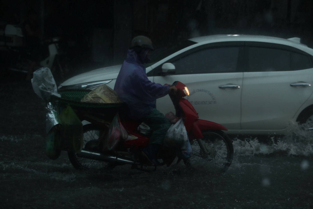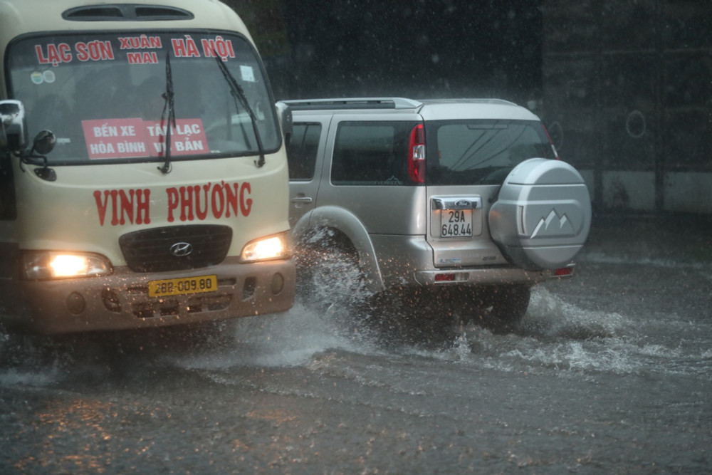 Mưa giông sầm sập trút xuống, trời Hà Nội tối đen, nhiều tuyến phố ngập trắng