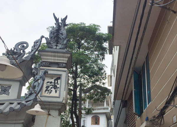 Dũng đã trèo lên trụ cổng đình Phú Đô và đột nhập vào căn nhà bên cạnh