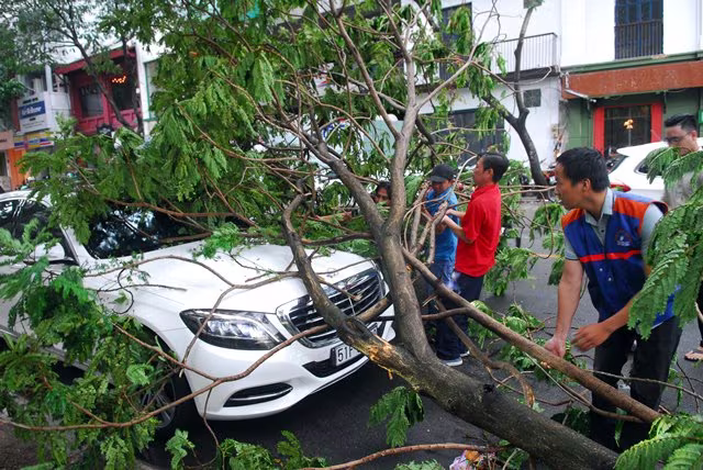 Cây xanh tét nhánh đè ô tô sang trên đường Mạc Thị Bưởi