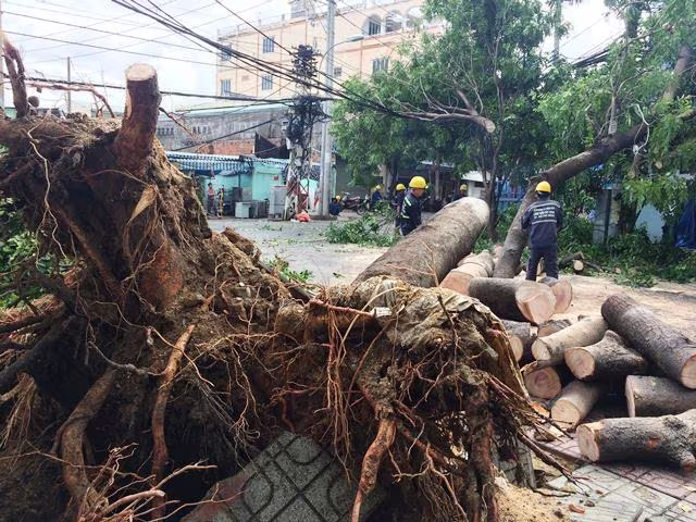 Khoảng 13h30 chiều cùng ngày, cơn mưa lớn kèm gió lốc đã khiến cây xà cừ cao hơn 15m, đường kính gần 1m trên đường Tùng Thiện Vương, quận 8 bất ngờ bật gốc, đè lên dây điện khiến 2 cột điện bị gãy, khu vực này mất điện diện rộng. Nhận tin báo, công ty điện lực Chợ Lớn cùng nhân viên công ty cây xanh có mặt, khắc phục sự cố.