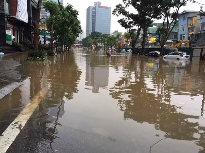 Chị Nguyễn Chi Linh, ở Khương Thượng, Đống Đa, Hà Nội cho biết, sáng dậy thấy khắp nơi mênh mông nước. Tầng để xe bị ngập, toàn bộ phương tiện đã bị ngâm trong nước cả đêm. Trong khi đó, con đường dẫn vào khu dân cư do đang bị thi công dự án thoát nước dang dở nên đã gây ngập nghiêm trọng.