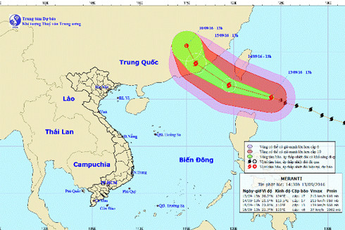 Trong khi đó, siêu bão Meranti đã vượt qua đảo Luzon (Philippines) đi vào Biển Đông mạnh cấp 16-17. Như vậy, đây là cơn bão số 5 trong năm 2016 hoạt động trên Biển Đông. Dự báo, siêu bão Meranti sẽ đổ bộ vào các tỉnh Quảng Đông, Phúc Kiến, Giang Tây (Trung Quốc) trong hôm nay 15-9.