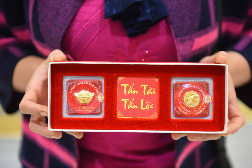 Năm nay những mặt hàng được bán chạy, bên cạnh nhẫn tròn trơn các thương hiệu, còn là sản phẩm vàng hình Thần Tài, đĩnh vàng Tài lộc, đặc biệt là vàng có hình con chuột.