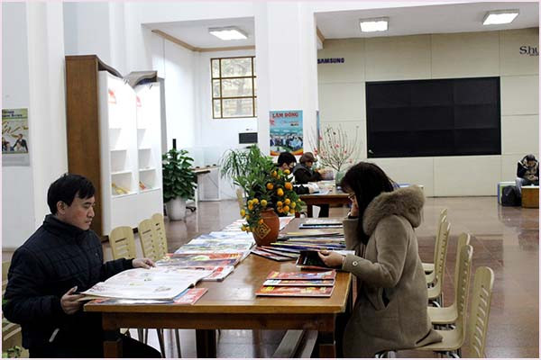 | Độc giả tới không gian trưng bày "Mùa xuân dâng Đảng" |