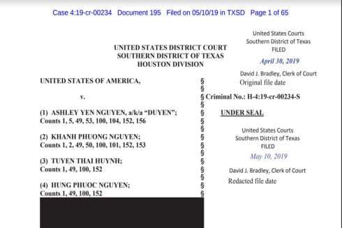 Tính đến ngày 13-5, Văn phòng công tố tại quận Nam Texas cho biết 96 đối tượng bị truy tố với 206 tội danh liên quan đến đường dây dàn xếp kết hôn giả, trong đó đã có 50 người bị bắt giữ.