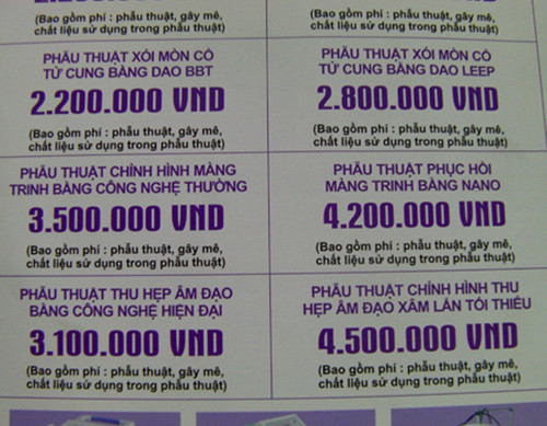 Nằm sâu trong một con ngõ nhỏ ở đường Trần Duy Hưng, mới đầu giờ sáng mà phòng khám phụ khoa T.H đã có đến gần chục cô gái ngồi chầu chực ở đó chờ đến lượt. Trong vai người chồng muốn vá lại “trinh tiết” cho vợ để tìm cảm giác mới, bà bác sỹ tên Lan nhìn tôi có vẻ không mấy thiện cảm rồi phán, “cứ bảo vợ đến đây, phải khám phụ khoa, xét nghiệm đã, cũng đơn giản thôi, trọn gói 10 triệu đồng”. Đến khi tôi thủ thỉ tên gã bạn đã giới thiệu, bà xởi lởi hẳn lên, “sao không nói sớm? Thôi chỗ quen biết, chị lấy chú 8 triệu đồng. Chỗ khác ấy à, cứ là 10 triệu đồngchưa chắc họ đã làm”.