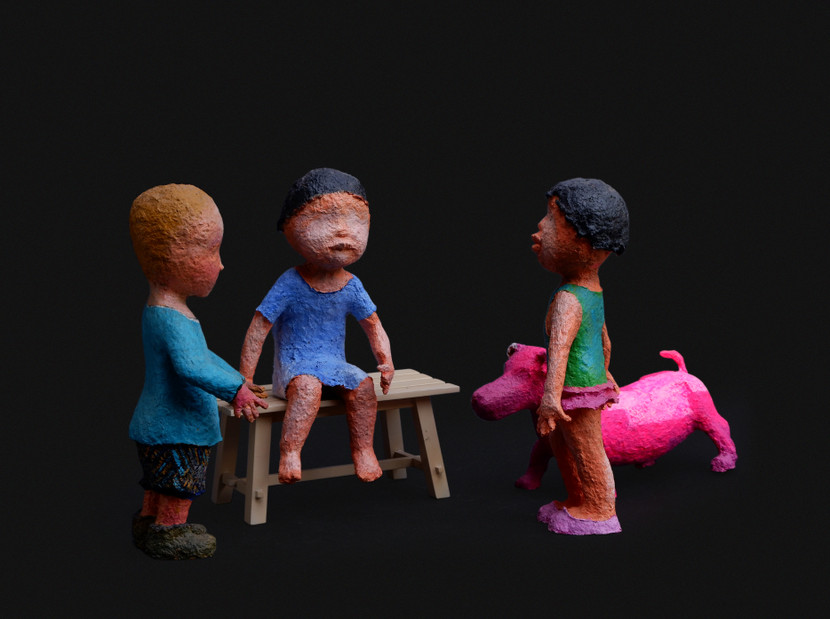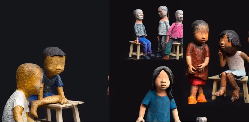 Triển lãm "Giấy và keo" bao gồm một bộ sưu tập 42 bức tượng – 31 trẻ em và 11 người lớn được tạo ra từ những nguyên liệu dễ thấy như giấy bồi, hồ dán và gốm sứ. Mỗi tượng trẻ em cao khoảng 30 đến 40cm, và mỗi tượng người lớn cao khoảng 50 đến 60cm.