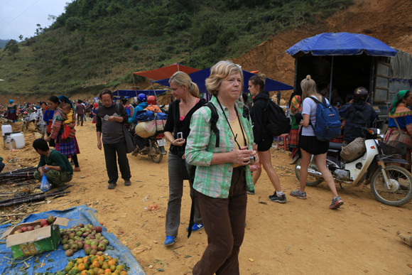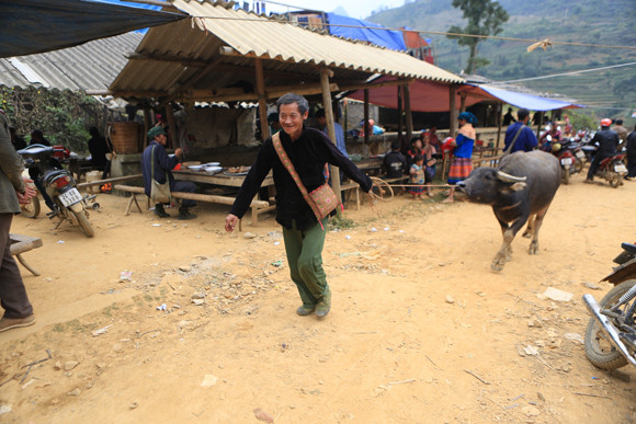 Du khách nước ngoài rất thích thú chợ phiên này, đặc biệt cách xem trâu của người mua