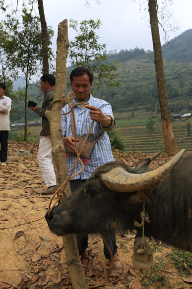 Lò Văn Pha mua con nghé đực 16 triệu đồng, nếu chăm sóc tốt sang năm thành trâu mộng sẽ được giá cao hơn nhiều tiền số tiền bỏ ra mua.