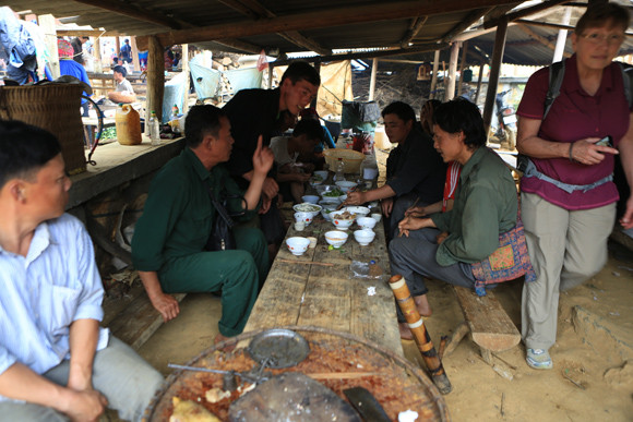 Những anh buôn trâu thường ngồi ở góc quán buổi sáng để... "chào nhau" bằng rượu