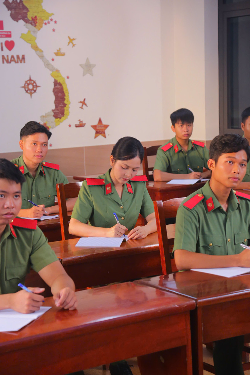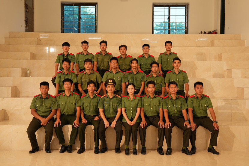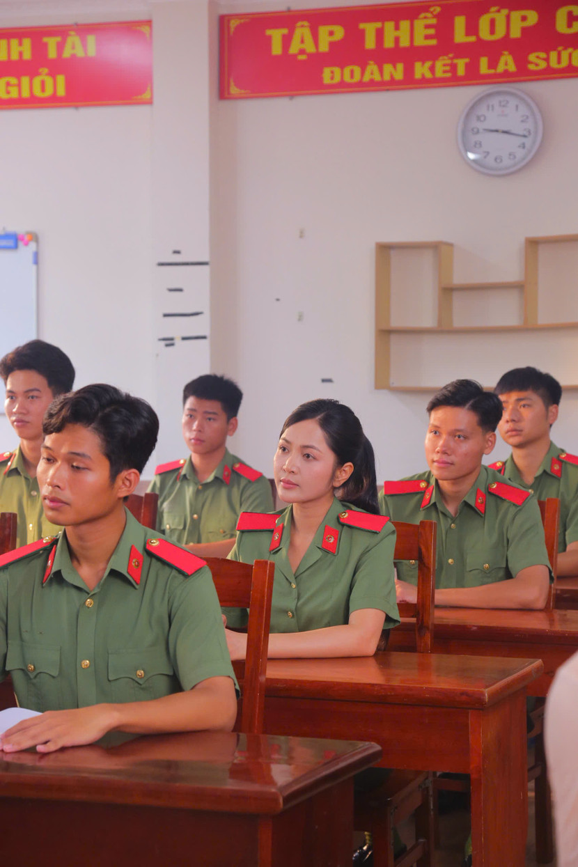 | Các chiến sĩ, giảng viên, học viên của lực lượng CAND đồng hành cùng Duyên Quỳnh trong MV |