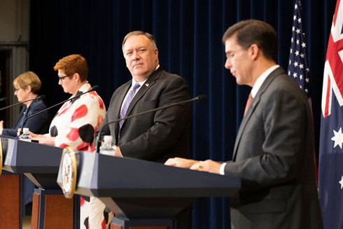Kết thúc cuộc họp Tham vấn cấp Bộ trưởng Mỹ-Australia (AUSMIN) lần thứ 30 vào tối 28-7 tại Thủ đô Washington (Mỹ), các bộ trưởng ngoại giao và quốc phòng hai nước đã ra tuyên bố chung đề cập một loạt vấn đề song phương, khu vực và quốc tế, trong đó đặc biệt bày tỏ quan ngại về diễn biến gần đây tại khu vực Ấn Độ Dương-Thái Bình Dương.