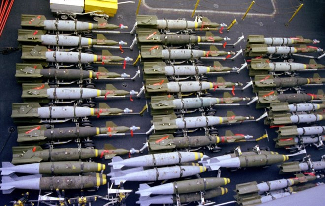 ANTD.VN - Lầu Năm Góc bổ sung hơn 800.000 quả bom và tên lửa tới kho dự trữ tại đảo Guam nhằm đối phó với mối đe dọa từ Triều Tiên. Đây được coi là đợt chuyển vũ khí đột xuất lớn nhất tới đảo này kể từ khi Chiến tranh Việt Nam.