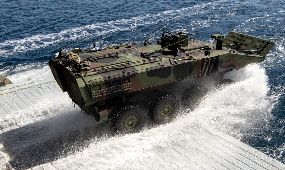 ANTD.VN - Hợp đồng mới với BAE Systems giúp Thủy quân Lục chiến Mỹ mở rộng số lượng xe chiến đấu đổ bộ bánh lốp 8×8 trang bị pháo tự động 30 mm, hướng tới xây dựng đội hình cơ giới có thể vừa vượt biển vừa tác chiến trực tiếp ngay khi đặt chân lên bờ.