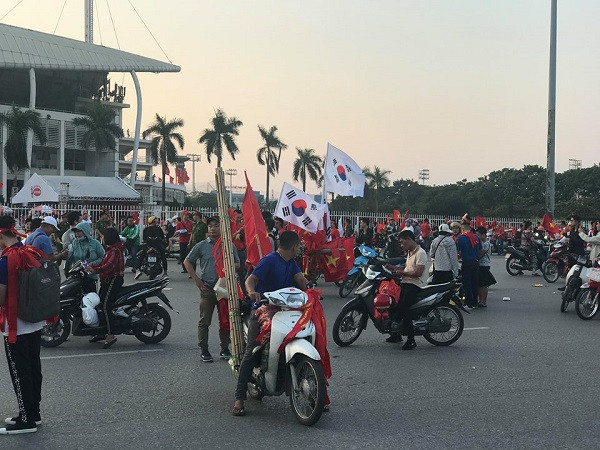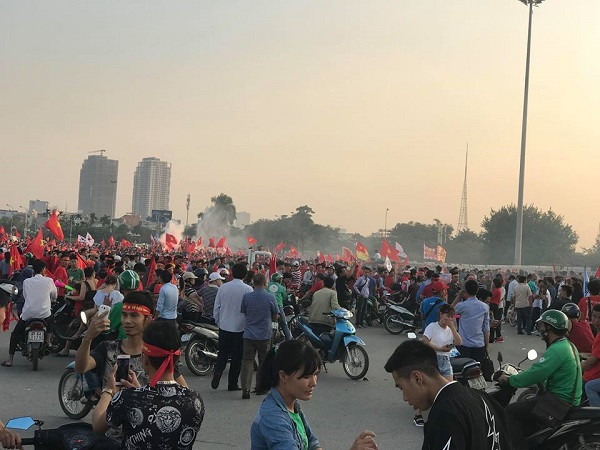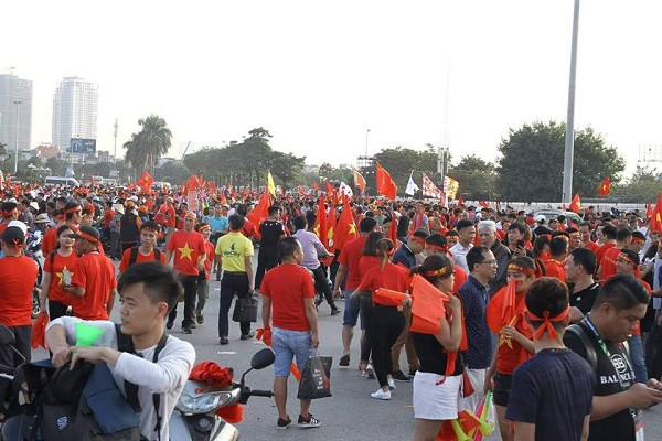 ANTD.VN - Còn khoảng gần 2 tiếng đồng hồ trước trận bán kết lượt về AFF Suzuki Cup 2018 giữa đội tuyển Việt Nam và Philippines, sắc đỏ đã nhuộm đỏ trên các con đường dẫn về sân vận động Quốc gia Mỹ Đình.