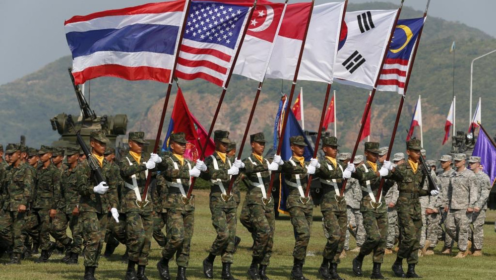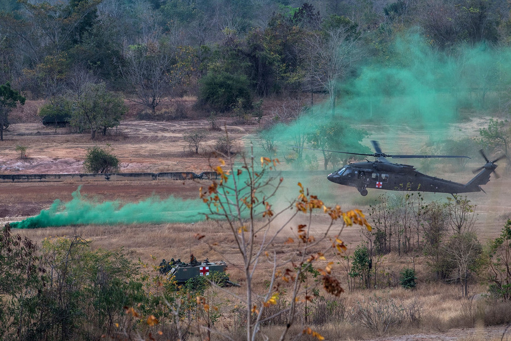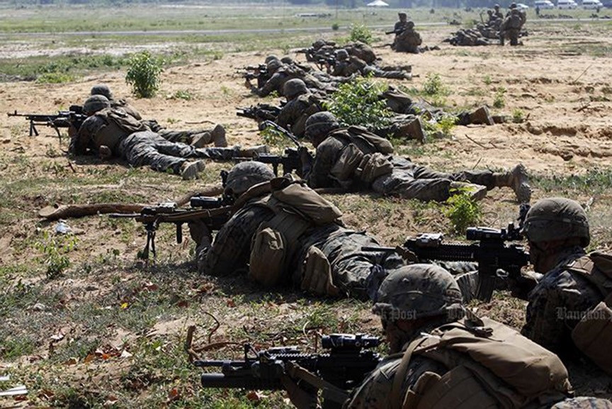 ANTD.VN - Ngày 16/2, các binh sĩ Mỹ, Hàn Quốc, Thái Lan...đã tham gia cuộc tập trận đổ bộ quân sự tại tỉnh Chonburi, Thái Lan. Đây là một phần hoạt động trong cuộc tập trận đa quốc gia lớn nhất khu vực châu Á-Thái Bình Dương mang tên Hổ mang Vàng lần thứ 37, bắt đầu vào ngày 13/2 vừa qua tại Thái Lan.