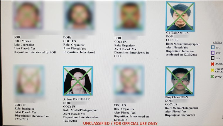 Một số người trong danh sách đã xác nhận với NBC News rằng họ đã bị “kéo” đến biên giới sau ngày danh sách được biên soạn và được thông báo rằng họ đang bị thẩm vấn như một phần của "cuộc điều tra an ninh quốc gia".