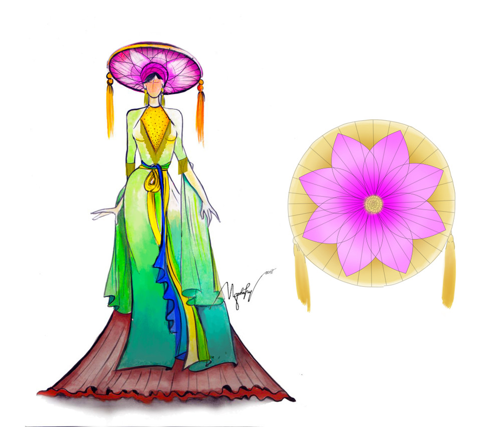 Mỹ Linh mặc áo tứ thân, đội nón hoa sen, múa "Cò lả" tại Miss World 2017