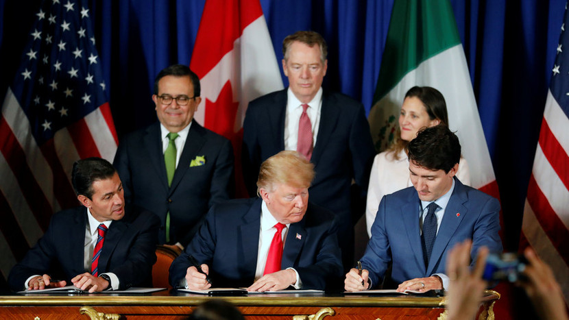 Lễ ký kết diễn ra bên lề hội nghị G20 ở thành phố Buenos Aires của Argentina. Theo Tổng thống Trump, tất cả các bên đều có lợi từ Hiệp định Mỹ - Mexico – Canada (USMCA).