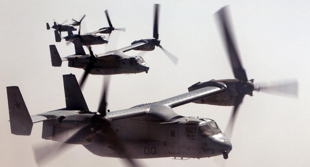 ANTD.VN - Bay nhanh như máy bay cánh bằng lại có khả năng cất, hạ cánh thẳng đứng như trực thăng, MV-22 Osprey được coi là một trong những vũ khí uy lực hiện nay của Mỹ và Nhật Bản, chúng được dùng để gửi tín hiệu nóng tới đối phương.