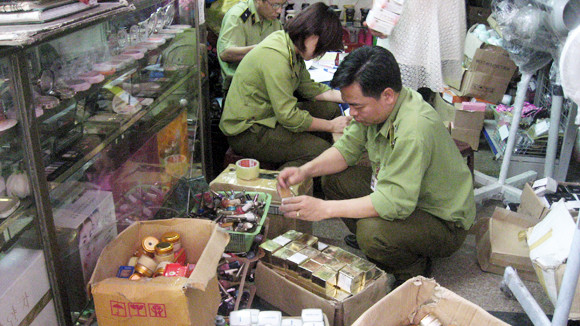 PV ANTĐ đã cùng đoàn công tác Đội 6 Phòng Cảnh sát PCTP về môi trường, Đội QLTT số 1, bất ngờ kiểm tra việc chấp hành pháp luật trong kinh doanh mỹ phẩm, tại cửa hàng mỹ phẩm Vạn Xuân (phố Huế, quận Hai Bà Trưng). Tại cửa hàng này, cảnh sát phát hiện, thu giữ cả trăm sản phẩm mỹ phẩm các loại như: kem trắng da, dưỡng da, kem chữa nám da, sơn móng tay, nước hoa… không có hóa đơn chứng từ chứng minh nguồn gốc xuất xứ, nhiều mặt hàng trong đó có nhãn mác Trung Quốc. Cuối giờ chiều cùng ngày, hàng chục thùng carton mỹ phẩm, ước tính trị giá cả trăm triệu đồng mới được lực lượng chức năng kiểm đếm, niêm phong xong. Số hàng hóa không rõ nguồn gốc này sẽ bị tịch thu, tiêu hủy theo quy định - Trung tá Phạm Giang Sơn cho biết.