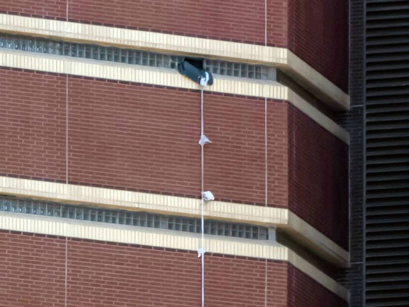 Hai đối tượng đã nối các miếng vải thành đoạn dây dài 100m, buộc vào chân bàn trong phòng rồi phá cửa sổ để leo xuống đất. Trong phòng giam của những người này, cảnh sát tìm thấy một sơ đồ vẽ tay của nhà tù.