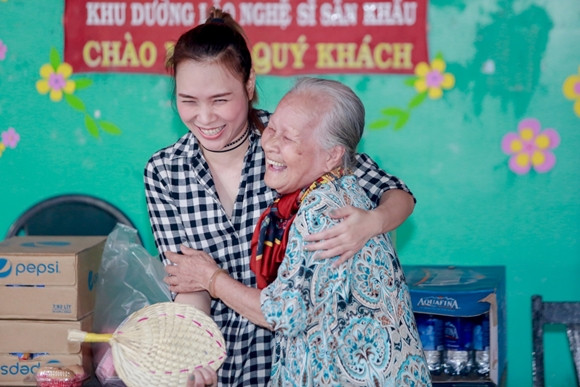 Họa mi tóc nâu không chỉ dành tặng những phần quà nhỏ để mừng tuổi các cô chú nghệ sĩ lớn tuổi mà cô còn phục vụ văn nghệ khiến không gian tràn ngập tiếng cười. Và đúng như lời hứa, nữ ca sĩ đã hát đủ các thể loại âm nhạc từ cải lương, bolero, đến ngâm thơ...