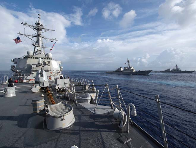 ANTD.VN - Chỉ trong hai ngày 28 và 29-4, hải quân Mỹ đã liên tiếp thực hiện các “hoạt động tự do hàng hải” qua các khu vực đảo nhân tạo mà Mỹ cáo buộc Bắc Kinh đã quân sự hóa ở Biển Đông. Giới chuyên gia nhận định, Lầu Năm Góc đang thay đổi chiến lược mới ứng phó với Trung Quốc ở Biển Đông: “Chiến lược dự báo trước, hành động không thể đoán trước”.
