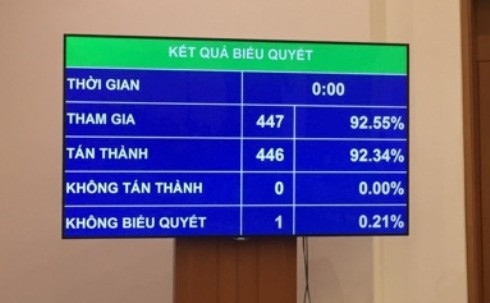 Với 446/447 Đại biểu tham gia biểu quyết tán thành (chiếm 92.34%), chiều 27/11 Quốc hội đã biểu quyết thông qua Nghị quyết về chất vấn và trả lời chất vấn.