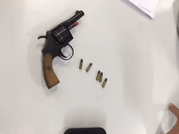 Khẩu súng và 5 viên đạn trong ổ tiếp đạn bị Cánh sát Thu giữ