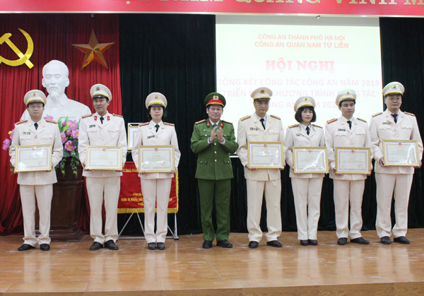 Đại tá Nguyễn Văn Viện, Phó Giám đốc CATP tặng Bằng khen của Bộ trưởng Bộ Công an cho các tập thể thuộc CAQ Nam Từ Liêm có thành tích xuất sắc