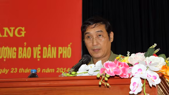 Thượng tá Nguyễn Ngọc Thắng phát biểu tại buổi lễ khai giảng lớp tập huấn pháp luật, nghiệp vụ cho lực lược BVDP