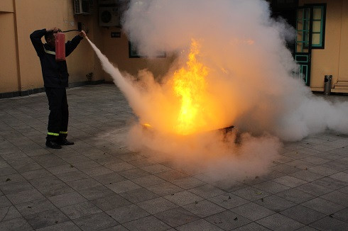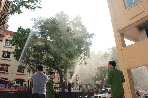 Một số hình ảnh diễn tập chữa cháy ngay tại Công an quận Hoàn Kiếm: