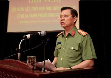 Đại tá Đào Thanh Hải, Phó Giám đốc CATP Hà Nội nhấn mạnh tầm quan trọng của hội nghị tập huấn