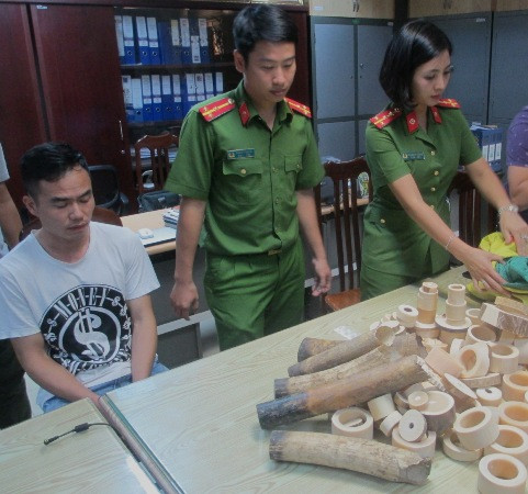 Trung tuần tháng 8 vừa qua, sau thời gian xác lập chuyên án đấu tranh, phòng CS Môi trường - CATP Hà Nội phối hợp với Đội Thanh tra Pháp luật - Văn phòng Cơ quan CSĐT CATP Hà Nội, đã bắt quả tang 2 đối tượng Lê Chí Thuận (SN 1960) và Nguyễn Hữu Tiến (SN 1983), cùng trú tại xã Nhị Khê, có hành vi sản xuất, mua bán số vật phẩm ngà voi lên tới gần 180 kg.