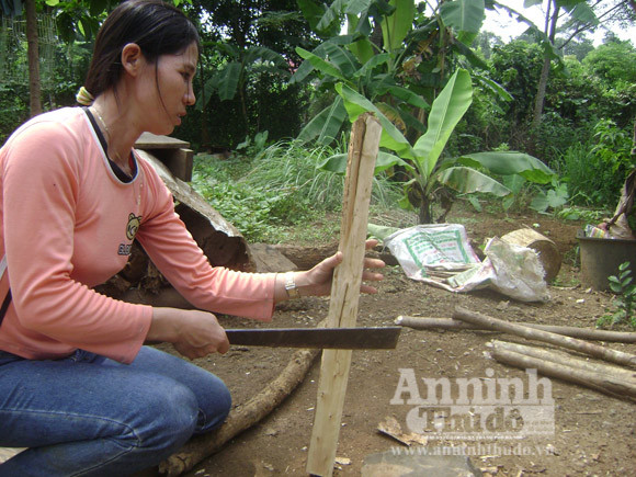 Cứ tưởng vào mảnh đất mới gia đình bà sẽ tạo lập được cuộc sống khấm khá hơn. Tuy nhiên chỉ với 3 sào ruộng nước bạc màu “gánh” một lúc đàn con 8 miệng ăn nên chồng, con trai bà cũng cố sắm chiếc máy rà phế liệu theo người làng vào rừng rà bom mìn, lấy thuốc nổ bán nuôi sống gia đình.